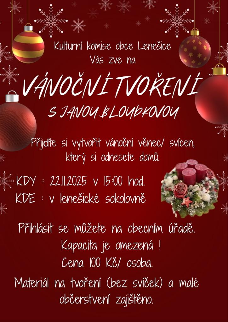 Kulturní komise Vás zve na vánoční tvoření. Přijďte si udělat radost a zahájit vánoční čas.